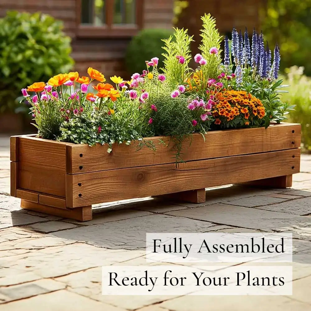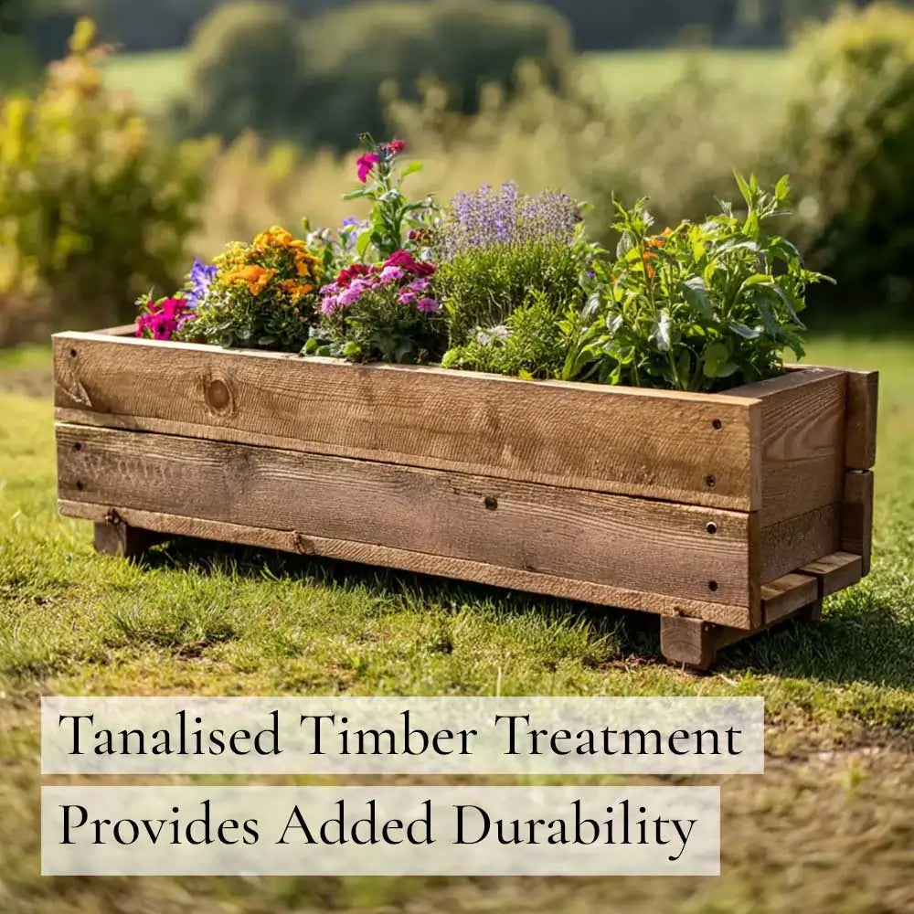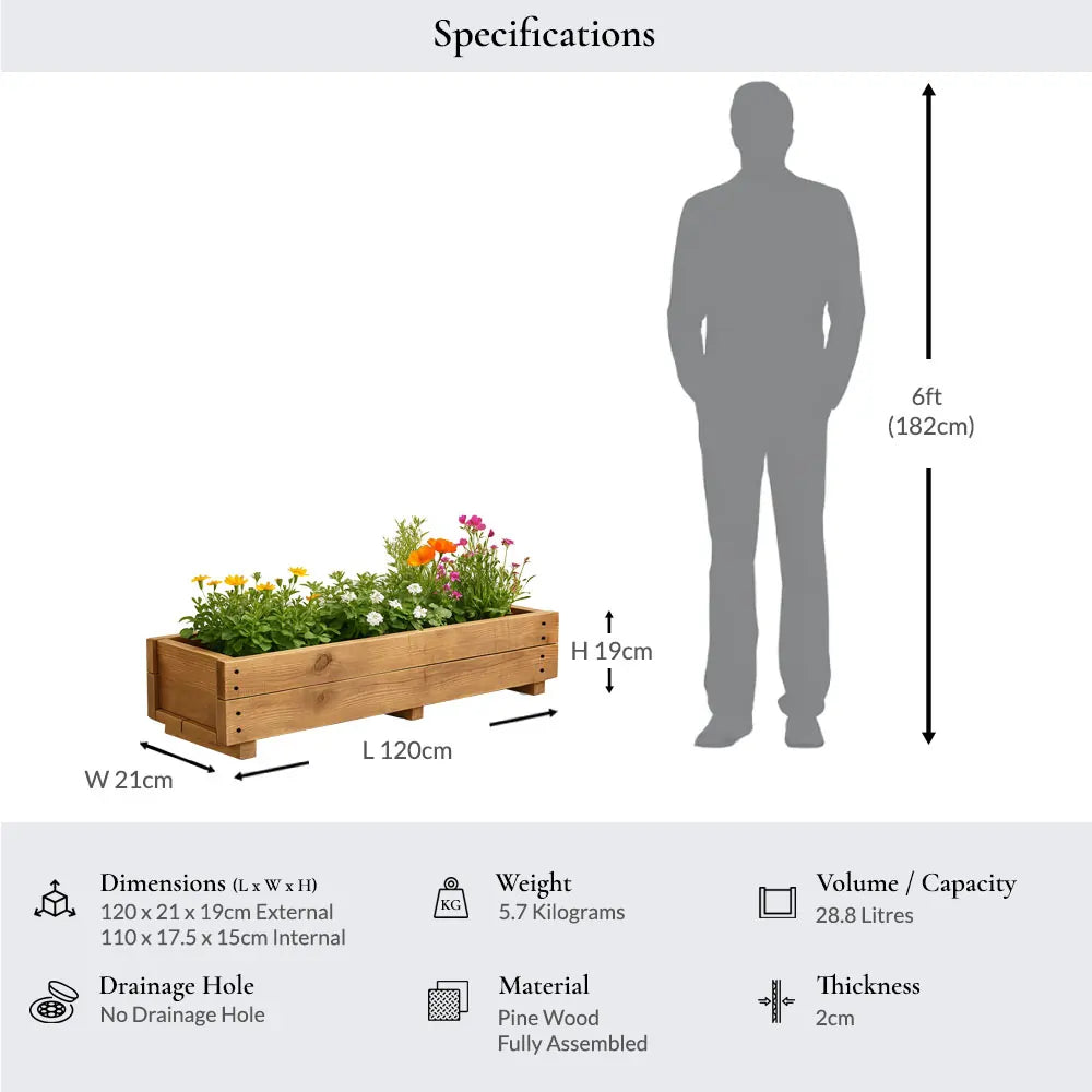 This fully assembled 120cm pine window box planter is a versatile garden addition, perfect for creating a stunning floral display. Crafted as a trough-style garden planter, it’s ideal for any outdoor space, from patios to balconies. The tanalised timber treatment provides added durability, ensuring this flower pot withstands various weather conditions while protecting against rot and insects. With its natural finish, this robust garden planter is both practical and stylish, enhancing the beauty of your outdoor décor.