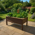 Made by hand in our small farm workshop by a team of 3. This is a new for spring 2024 design. Our first vegetable trug planter. THE MATERIALS: Built to last from 2” thick, builders grade timber. All wood is pressure treated at source. Built using materials hand selected for our business by local suppliers; We are proud to support other local businesses. Our suppliers know just how passionate we are about quality, so we are only sent the very best timber available. Each piece is fully quality checked before being used to ensure your product will stand the test of time. Even our screws are specified to last; Zinc plated for outdoor use, double countersunk and 5mm thick, they are durable, strong and provide a quality finish. THE SIZING The sizes to select are the largest external measurements, including the legs. Our veg trugs some in 3 different overall heights, 70cm, 90cm and 110cm. 70cm overall height - Large 30cm legs, 40cm depth, 40cm width 90cm overall height - X Large 50cm legs, 40cm depth, 40cm width 110cm overall height - XX Large 70cm legs, 40cm depth, 40cm width The legs can be extended to be longer upon request, get in touch for more information on this. Lengths do not include the small overhang of the topper (approx. 10mm on each edge). Legs are 5cm on each side of the planter. If you have a 90cm planter, the planter width will be 80cm to allow 10cm for the legs. If your length isn't available, get in touch for bespoke sizing. THE COLOURS Our vegetable trug is supplied in a two tone variation of painted dark oak with a natural, unpainted topper. Other paints are available on request - please message us to confirm this. All items sent via a tracked courier once constructed. For those in the highlands/NI/Islands please contact me before ordering for a postage quote.