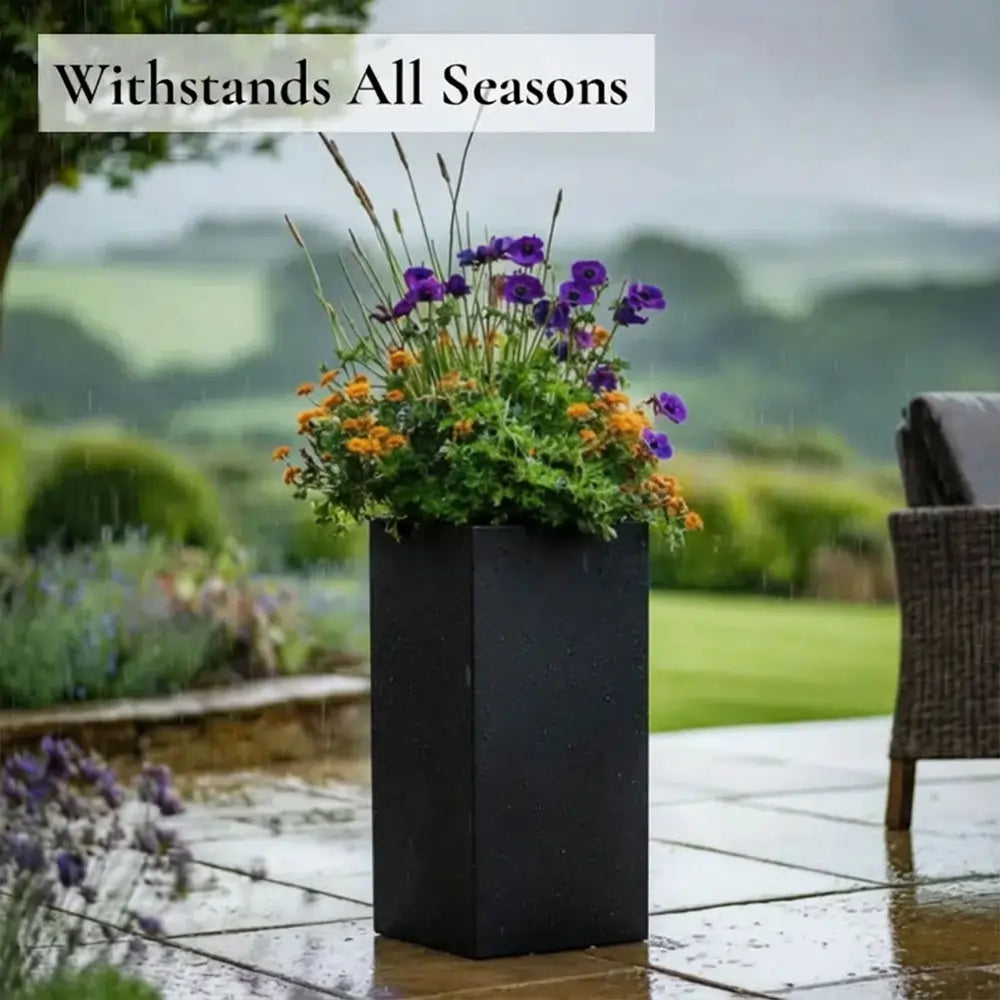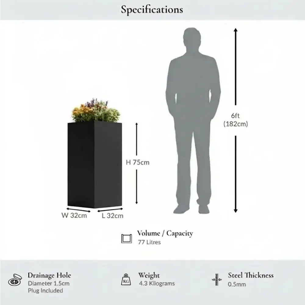 75cm Zinc Galvanised Matte Black Tall Square Planter
