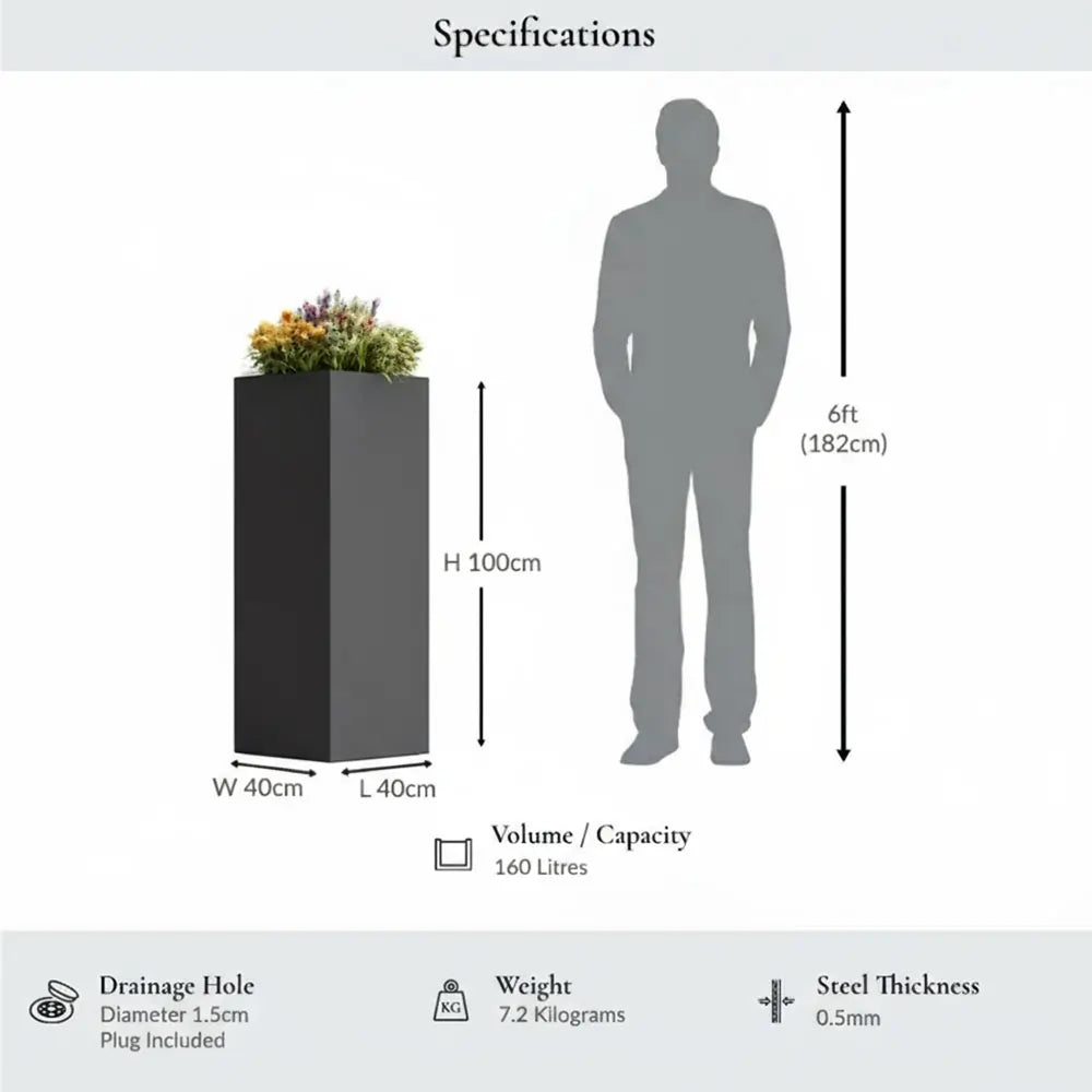 100cm Zinc Galvanised Matte Grey Tall Square Planter