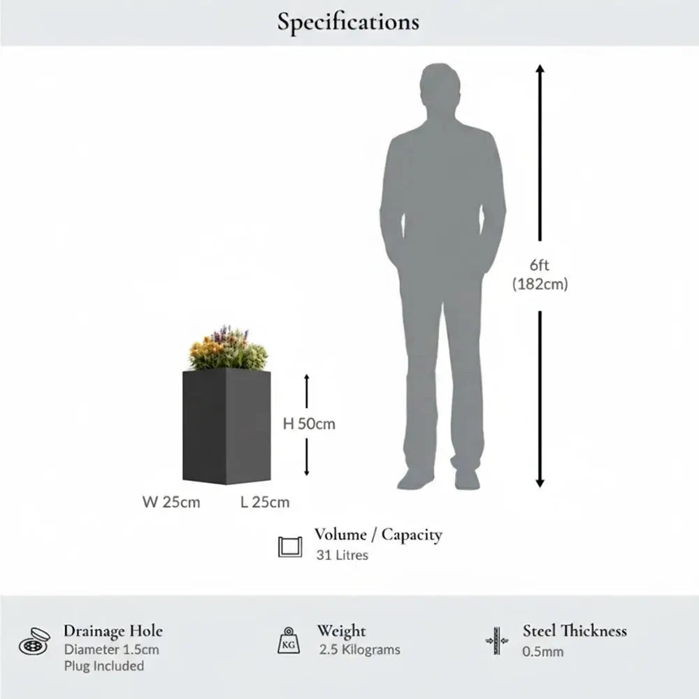 - Constructed to last, this planter is crafted from galvanised Aluzinc®with a safeguarded finish, ensuring it remains impervious to rust and frost. This versatility makes it suitable for year-round use, whether indoors or outdoors.