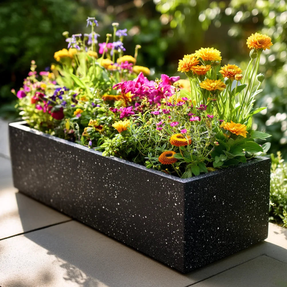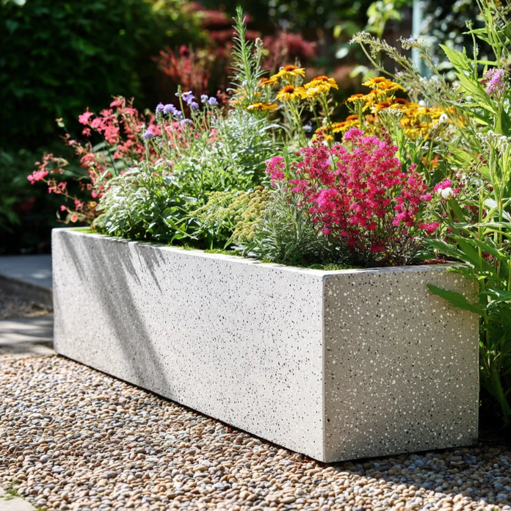 This stone zinc planter offers a lightweight yet durable solution for any garden or patio. With a textured stone effect, this elegant stone planter adds a modern touch to outdoor spaces. Perfect for shrubs, flowers, or compact trees, it combines style and practicality effortlessly.