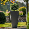This tall flared square planter is stylish and durable. This is the perfect tree planter for any patio or garden. It's stylish design means that it's sure to add class and sophistication to any garden space. This tall planter is perfect for entrances. It comes with a drainage hole to protect against root rot, and keep your plants happy and healthy.