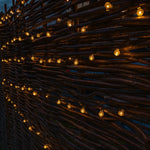 Enhance your garden’s rustic charm with these warm LED solar lights, designed to complement natural fencing like hazel hurdles. The vintage-style bulb and ripple-effect glow create a welcoming atmosphere that highlights the textures of woven fencing and other organic features.