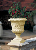 This 34.4cm Vine Urn Stone Planter is a traditional jardiniere stone planter, inspired by timeless European design. Its detailed carvings and exquisite craftsmanship make it ideal for enhancing garden aesthetics. Crafted from durable stone, it is perfect for both contemporary and classical landscapes.