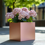 40cm Zinc Galvanised Brushed Rose Gold Finish Square Planter