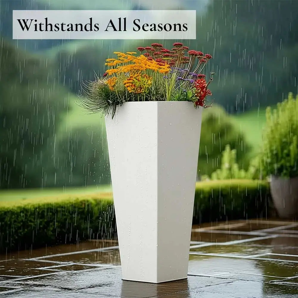Transform your outdoor space with this 90cm tall square planter, made from galvanized Aluzinc for exceptional durability and rust resistance. Its sleek matte white finish adds a contemporary touch, ideal for gardens, patios, or entrances. Designed for taller plants, it offers a striking, modern aesthetic with long-lasting functionality for any season.
