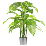 100cm Large Foxs Aglaonema (Spotted Evergreen) Tree Artificial Plant with Silver Metal Planter