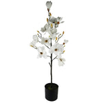 110cm Magnolia Artificial Tree White Potted. Our magnolia trees have silk flowers and fully wired stems so they can be shaped to fit your space. . As we have it arranged in our photos this plant measures: 110cm x 40cm x 40cm. The stems are wired and this can be shaped to fit your space perfectly.. These look particularly impressive when arranged in one of our decorative planters (available separately).. Pot measures: 17cm (d) x 15cm (h). Pot Material: Plastic weighted pot