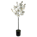 140cm Magnolia Artificial Tree White Potted. Our magnolia trees have silk flowers and fully wired stems so they can be shaped to fit your space. . As we have it arranged in our photos this plant measures: 140cm x 50cm x 50cm. The stems are wired and this can be shaped to fit your space perfectly.. These look particularly impressive when arranged in one of our decorative planters (available separately).. Pot measures: 20cm (d) x 17cm (h). Pot Material: Plastic weighted pot