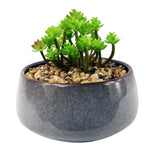 14cm Ceramic Blue Dish Planter with Artificial Sedum Clavatum Plant