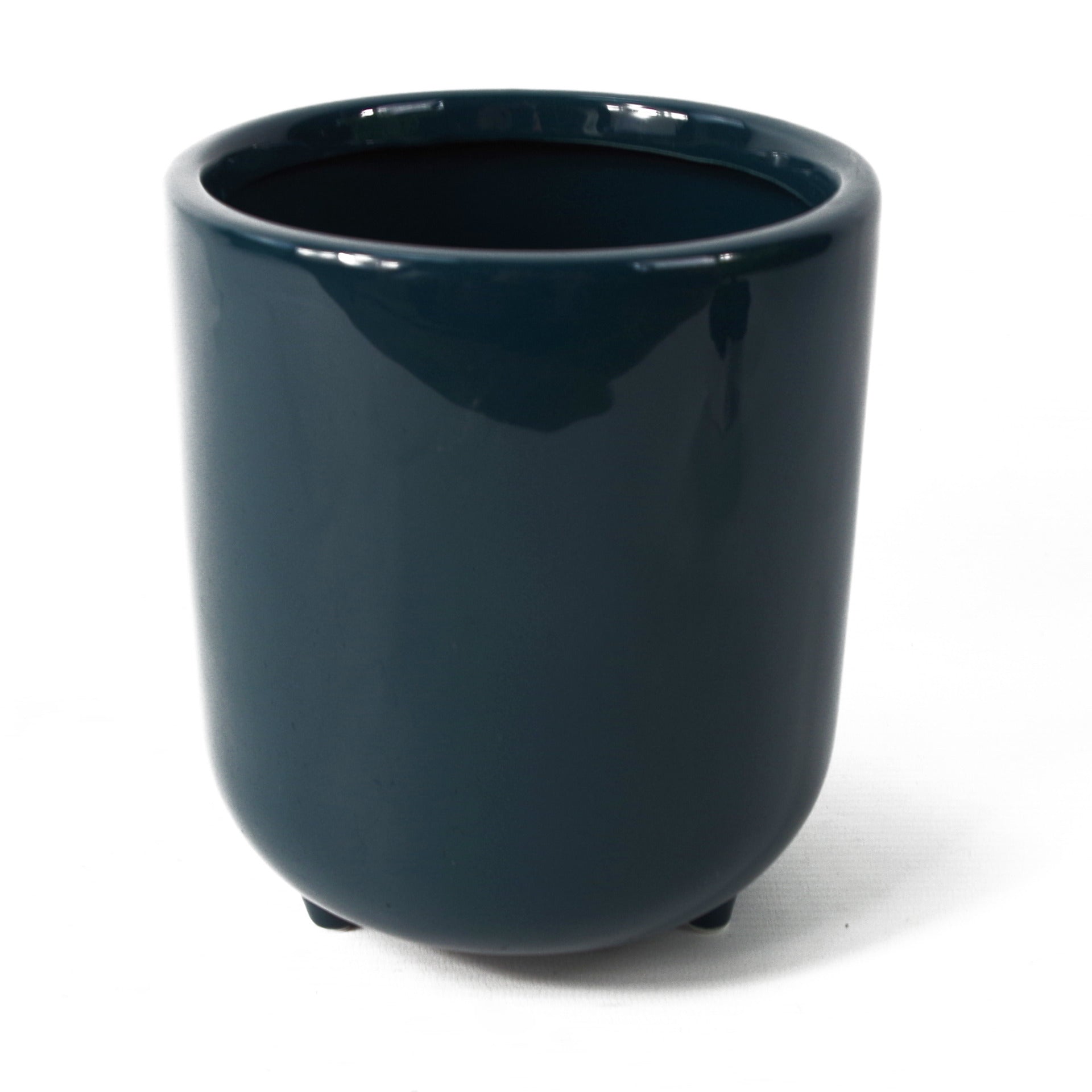 15cm Dark Teal Green / Blue Ceramic Planter with Feet