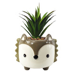 18cm Ceramic Grey Fox Planter with Artificial Dracaena Plant