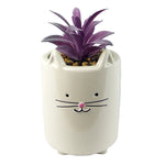 18cm Ceramic White Cat Planter with Artificial Pink and Purple Succulent Plant