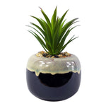 20cm Ceramic Drip Glazed Planter with Artificial Green Dracaena Plant