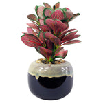 22cm Ceramic Drip Glazed Planter with Artificial Red Mosaic Plant