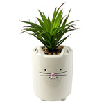 24cm Ceramic White Cat Planter with Artificial Green Succulent Plant