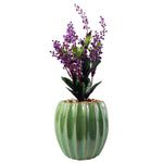 30cm Ceramic Green Glazed Barrel Planter with Artificial Purple Vitex Negundo Plant