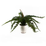 Highly realistic palm in a decorative ceramic vase planter, ready to display straight out of the box. Thick dense leaves with individually shaped fronds. The stems are wired and the leaves can be shaped to fit your space. As we have the fern arranged in our photos it measures 40cm x 60cm x 60cm. The decorative grey plastic planter measures 14cm (h) x 13cm (w). The leaves are plastic. The ceramic decorative planter is topped with fixed pebbles for an attractive, low maintenance finish.
