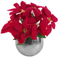 Artificial Christmas Xmas Red Poinsettia 40cm Silver Curved Metal Planter