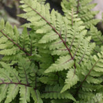 Eared lady fern ‘Okanum’ is a wonderful pond side plant, ideal for boggy areas or the moist soil at the water's margin. It helps to create a lush, natural border, attracting pollinators and other beneficial insects to your garden. These plants are usually hardy and contribute to a vibrant transition between the aquatic environment and drier land. Eared lady fern ‘Okanum’ can add significant textural or floral interest to the pond's surroundings. Plant in moist, well-drained soil in a sunny to partially shaded spot.