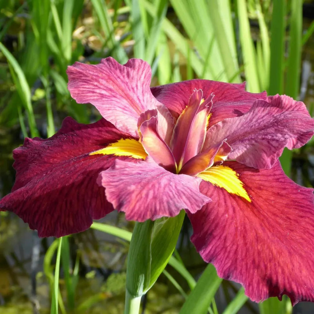 Louisiana iris ‘Ann Chowning’ is an excellent marginal plant, perfect for adding structure and interest to the shallow edges of your pond. It's a beneficial pond edge plant for attracting wildlife, offering cover for emerging creatures like froglets and newly hatched dragonflies. Generally fully hardy and low maintenance, it thrives with minimal fuss. The foliage of Louisiana iris ‘Ann Chowning’ often provides a pleasant visual texture, and it may produce seasonal flowers. Grow in a sunny or partly shaded position in wet soil or shallow water around ponds, rain gardens, or streams.