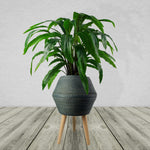 Overall size: 40 x 40 x 62cm. At the widest point this pot measures 40cm. The top rim has a diameter of 26cm. The inner hole diameter is 21cm, any of our plants with starter pots smaller than this and all our bare stem plants will fit perfectly inside this planter. Legs measure 30cm. Top planter measures32cm x 40cm. Please see images for a size diagram.