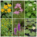 Create a stunning focal point in your small pond with our collection of six plants, featuring an included water lily. This curated set provides a beautiful mix of colors, textures, and heights, designed to attract wildlife and thrive in depths from 0 to 60cm. The water lily's color and cultivar may vary.