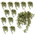 Pack of 12 x UV Protected artificial hanging plants, suitable for outdoor use. Measures 70cm x 40cm when arranged as shown in our pictures. Stems are wired and leaves can be arranged to suit.