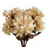 Pack of 6 x 55cm Dahlia Flower stems - Dusty Cream. Realistic dahlia flower stems with silk flowers and wired shapable stems. Leaves are silk. Can be used to make arrangements with our other artificial flowers or as decorations on their own. Each stem measures 55cm overall height x 15cm. These are easy to cut down shorter using a pair of wire cutters if required. Some of our photos show vases to give an idea of size and possibilities for arrangement, but no vases or planters are included with this foliage.
