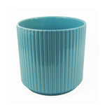 Turquoise Blue Ribbed Ceramic Planter Plant Pot 13.5 x 13.5 x 13cm