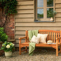 The Norfolk Collection Kingsbury 150 Bench KD Mahogany, with its warm red hue, epitomises timeless elegance in a traditional design. The curved backrest, deep seating, and proportional armrests ensure a comfortable three-seat haven