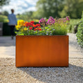 This long, tall trough planter, crafted from corrosion-resistant Corten steel, seamlessly combines modern design with outstanding practicality. Its distinctive rust-like patina develops naturally over time, adding character and blending effortlessly into any landscape.