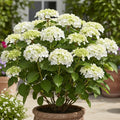 - Features fluffy, white blooms in summer, reminiscent of snowballs on the terrace.