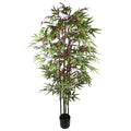 180cm Artificial Bamboo 1140 Red Green Silk Leaves. When arranged as shown in our pictures this stands 180cm tall x 80cm x 80cm. The plastic weighted pot measures 17cm (w) x 14cm (h).Highly realistic premium quality artificial plant. Comes potted in a plain black plastic pot and is ready to display but these do look all the more impressive if you stand them inside a larger decorative planter. It comes potted in a plastic weighted pot and whilst it can be left like that you can (if you wish) place it inside a larger planter for a different look. It is very easy to maintain - no watering required! It will benefit from the occasional dusting or can also be hosed off in the garden - these are very robust plants!It is highly realistic with botanically accurate foliage. These come ready to display, just arrange them on delivery and they will look like the real thing.