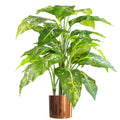 100cm Large Foxs Aglaonema (Spotted Evergreen) Tree Artificial Plant with Copper Metal Planter