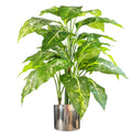 100cm Large Foxs Aglaonema (Spotted Evergreen) Tree Artificial Plant with Silver Metal Planter