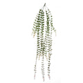 Measures 120cm x 25cm when laid flat, width can vary depending on how it is arranged. These look particularly good hanging as a group for a realistic foliage effect. Extra long hanging string of pearls plant. Leaves and vines are plastic.