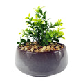Ceramic Blue Dish Planter with Artificial Crassula Plant. Overall measurements: 16cm (h) x 14cm (w) x 14cm (d). Ceramic planter measures: 14cm (w) x 7cm (h) approx. Plant comes fully potted in the small ceramic planter shown. This is a blue misted design which looks fantastic on a desk. Decorative stones are fully fixed and won't come loose. Ready to display. Available with a choice of plants.