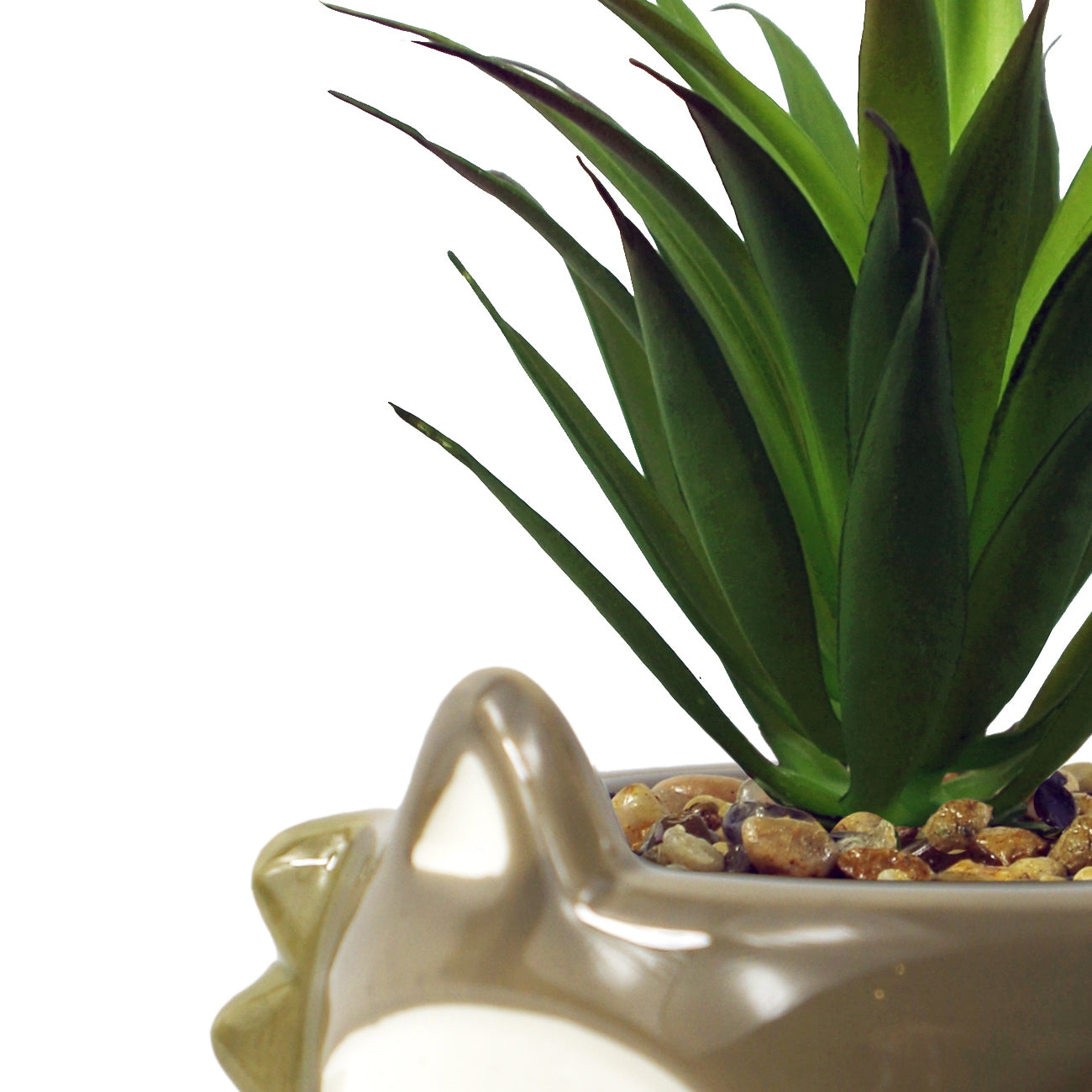 18cm Ceramic Grey Fox Planter with Artificial Dracaena Plant
