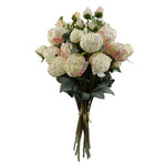 6 x 55cm Cream Peony Artificial Flower Stem bundles. Each spray bundle is bound with hessian and includes four flowers and three buds - there are six bundles in this pack which gives a total of 24 flowers and 18 buds. Our artificial flowers have high attention to detail - flowers you have to check twice to believe they actually artificial!. . These look particularly impressive when combined as a bouquet with our other artificial flowers.. These flowers come as bare stems ready to create your own arrangements. Any planters or vases shown are for illustration only and are not included.