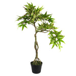 Pot material: Plastic. Leaves: Silk. Trunk: Moulded plastic. Not suitable for outdoor use.