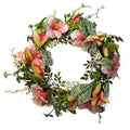60cm Large Luxury Pink Blossom Floristry Wreath. Size including foliage when arranged is 60cm diameter. Woven base measures 42cm. Ideal for all door sizes. We have matching garlands available if you need a set.