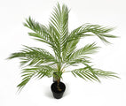 This is a realistic replica of an areca palm plant. It is entirely artificial and comes potted in a small black plastic pot. As we have it arranged in our photos this measures 70cm tall x 50cm wide x 50cm depth - this has wired stems and so the leaves can be rearranged to suit your space. This comes potted in a small black plastic pot measuring 10cm (h) x 12cm (w). To make this even more realistic put it inside a decorative planter and cover with gravel or bark. Highly realistic.