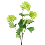 Viburnum stem with silk flowers and leaves. Can be used to make arrangements with our other artificial flowers or as decorations on their own. Each stem measures 70cm overall height x 12cm wide and has an array of flowers. Flowers are silk. These are easy to cut down shorter using a pair of wire cutters if required. Some of our photos show vases to give an idea of size and possibilities for arrangement but no vases or planters are included with these flowers.