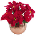 Artificial Christmas Xmas Red Poinsettia 40cm Copper Hammered Metal Planter