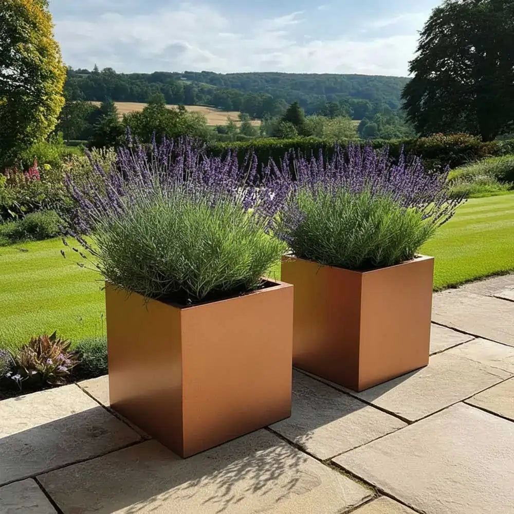 This 30cm copper-coloured cube planter is perfect for compact outdoor spaces, adding a touch of rustic elegance. Ideal for flowers like violets, crocuses, or primroses, its durable design ensures long-lasting use. Perfect for patios, balconies, or doorways, it’s a versatile addition to any garden.