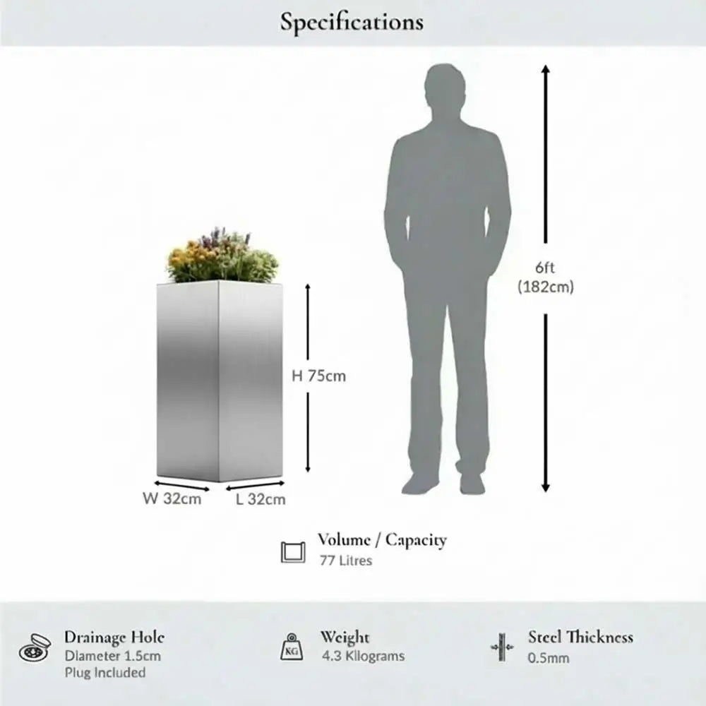 - Constructed to last, this planter is crafted from galvanised Aluzinc®with a safeguarded finish, ensuring it remains impervious to rust and frost. This versatility makes it suitable for year-round use, whether indoors or outdoors.