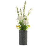 It comes potted in a lightweight plastic tube vase and is ready to display. Vase measures 13cm (h) x 7cm (w)
