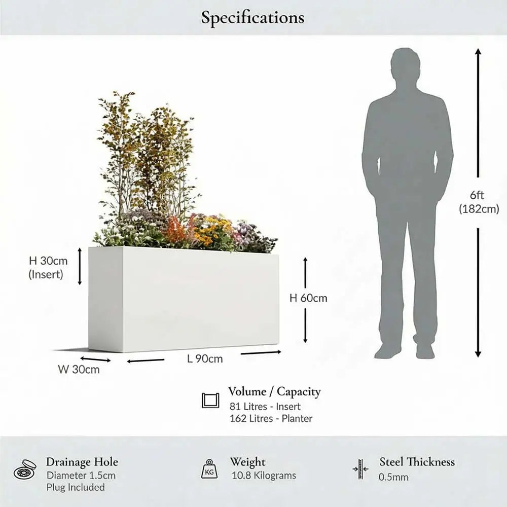 90cm Long Zinc Galvanised Matte White 60cm Tall Trough Planter